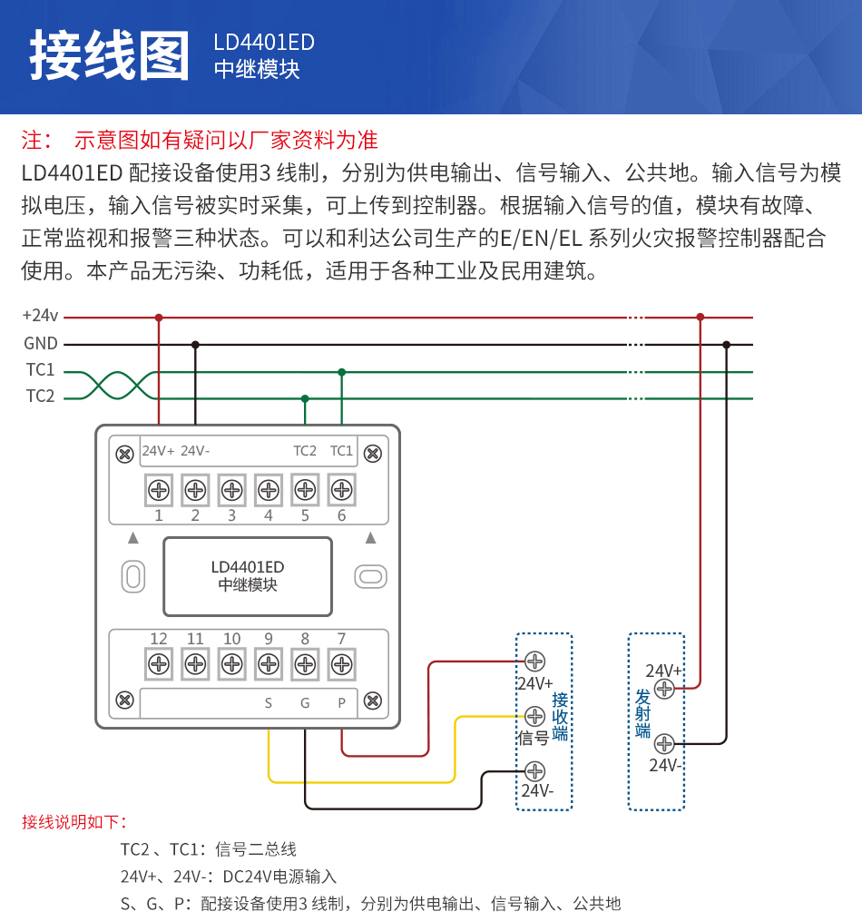 1、LD4401ED中繼模塊二總線(xiàn),無(wú)極性。