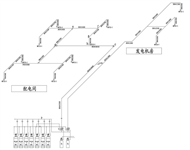 F、試壓:由于本氣體滅火系統(tǒng)的特殊性決定管道不允許進行水壓強度試驗,故采用氣壓強度實驗對系統(tǒng)進行試壓,氣壓強度試驗壓力應為7.705Mpa。