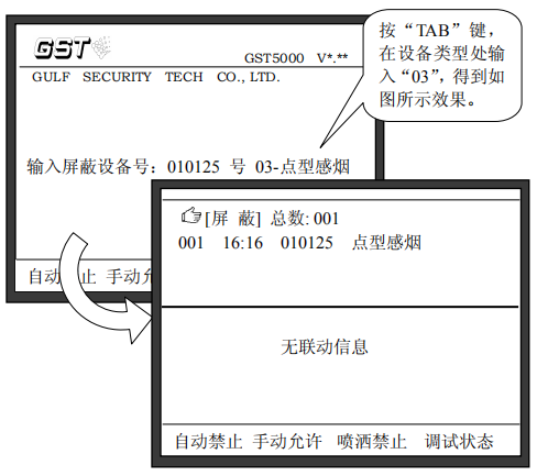 假設(shè)需要屏蔽的現(xiàn)場設(shè)備用戶編碼為010125的點型感煙探測器,其屏蔽操作應(yīng)按照如下步驟進行:
