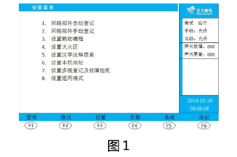 ① 按“功能”鍵,進(jìn)入選項(xiàng)菜單,按“F4 安裝” 鍵,輸入二級密碼,按“確認(rèn)”鍵,進(jìn)入安裝菜單界面(圖1)。