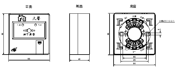 三、J-SAP-EI6021型手動火災(zāi)報警按鈕外形及安裝尺寸