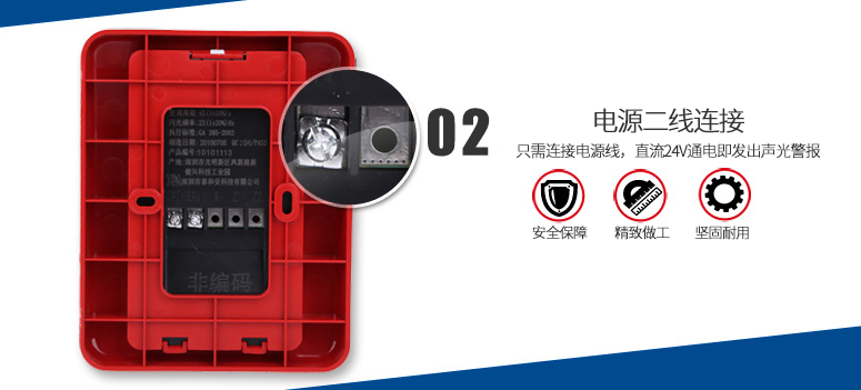 TX3302聲光警報(bào)器(以下簡(jiǎn)稱聲光警報(bào)器),是一種安裝在現(xiàn)場(chǎng)的聲光報(bào)警設(shè)備。采用高亮度的LED光源,聲光警報(bào)器啟動(dòng)后發(fā)出強(qiáng)烈的聲光報(bào)警信號(hào),以達(dá)到提醒現(xiàn)場(chǎng)人員注意的目的。