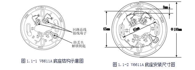 V6611A探測(cè)器底座結(jié)構(gòu)簡(jiǎn)單、安裝方便、結(jié)構(gòu)件配合牢固;具有探測(cè)器防丟失結(jié)構(gòu)設(shè)計(jì),每只底座均備有專用的解鎖鑰匙。底座備有長(zhǎng)圓形安裝定位孔,可適應(yīng)于86H50型標(biāo)準(zhǔn)預(yù)埋盒及其它型號(hào)的預(yù)埋盒。