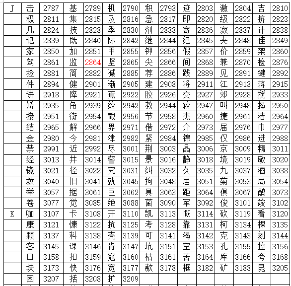 海灣gst5000消防主機(jī)字根表